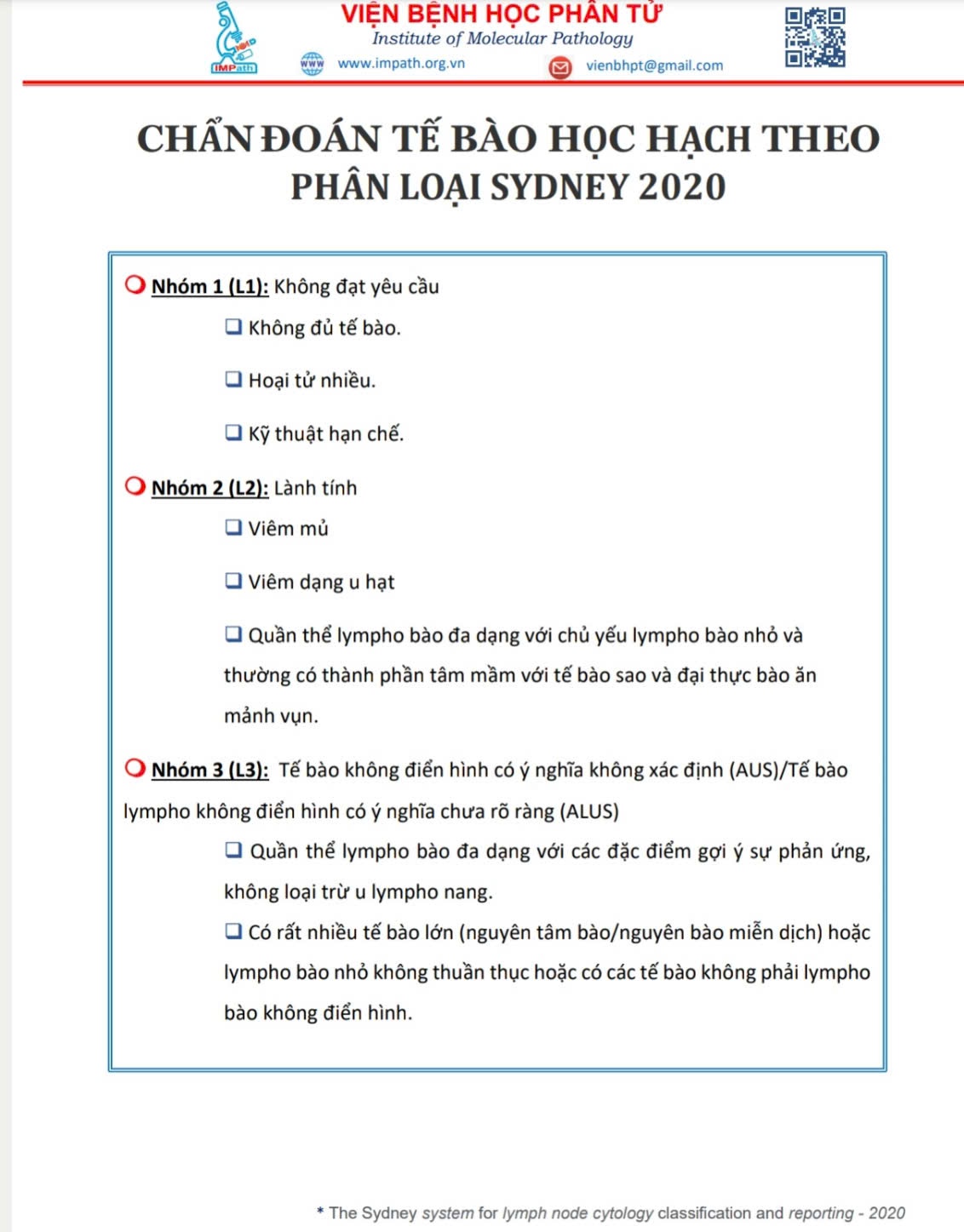 Hệ thống Milan mô tả phương pháp tiếp cận quốc tế nhất để phân loại v...